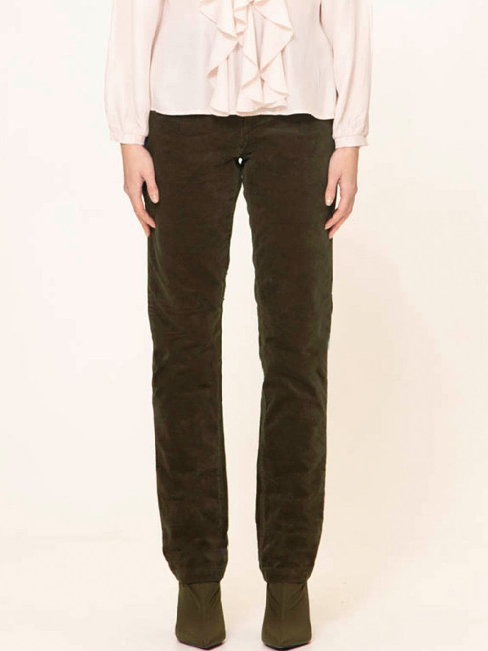 Our Zoekoovi Jeans are a fabulous pant option, crafted in soft and tactile velvet-effect stretch cotton, they’re cut to sit at mid-waist, and have a button-and-fly front closure, and slim, full-length legs. Available in four gorgeous hues, Olive, Pink, Steele and Baby Blue, these pants are a stylish alternative to your classic denim and a great way to introduce colour. For a complete ensemble, pair with the, , or as featured.